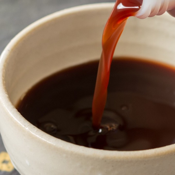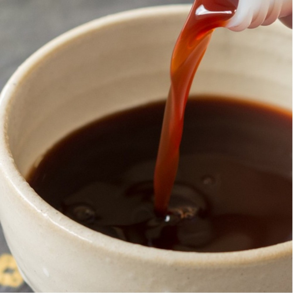 ▪濃度が高いので、ゲル化することがあります。凝固がゼリー状の状態であれば液状に戻ります。ステンレスか陶器の鍋で水を加えながら沸騰させれば戻りますので、ろ過してご使用ください。(※鉄製の鍋は柿渋と反応して使えなくなります)