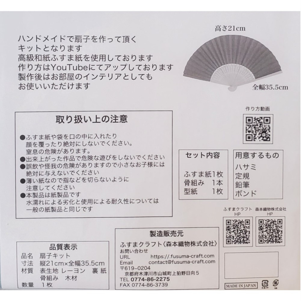 ご自身で扇子を作っていただくキットとなります。