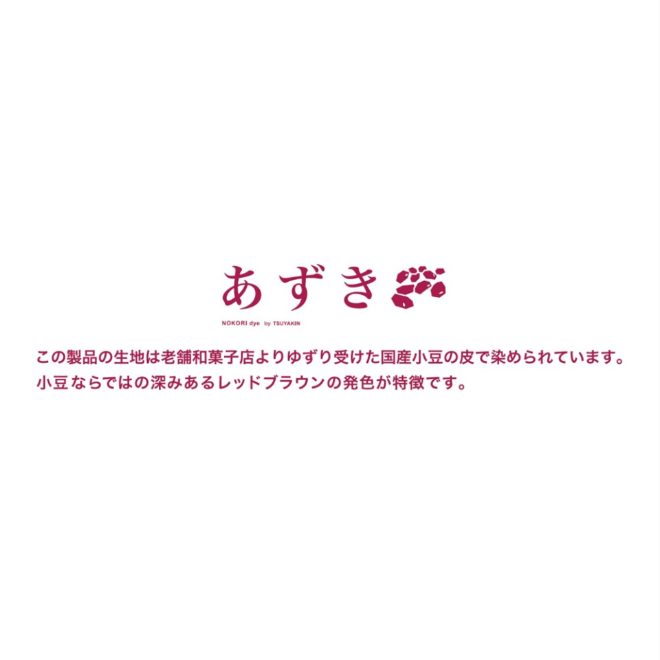 この製品の生地は老舗栗菓子店よりゆずり受けた国産小豆で染められています。小豆ならではの深みのあるレッドブラウンが特徴です。