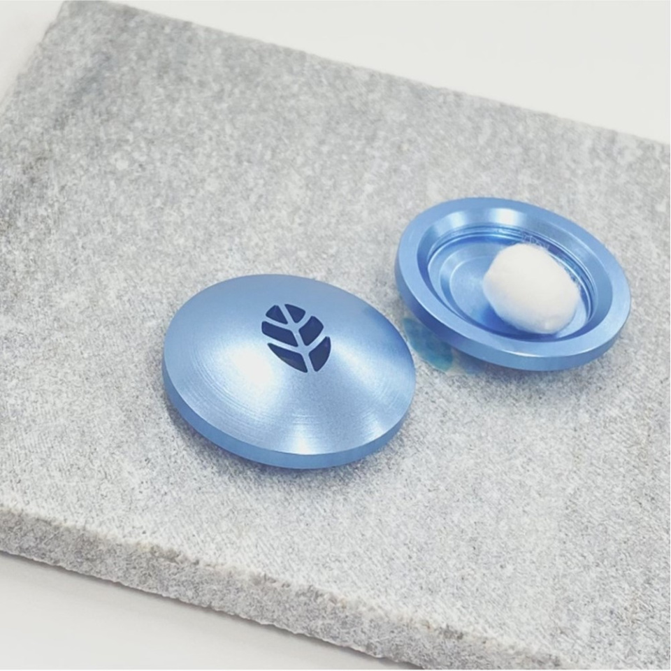 こちらのカプセルは、旋盤加工という加工方法でアルミニウムを丹精に削り出し職人が一つひとつ丁寧に仕上げております。