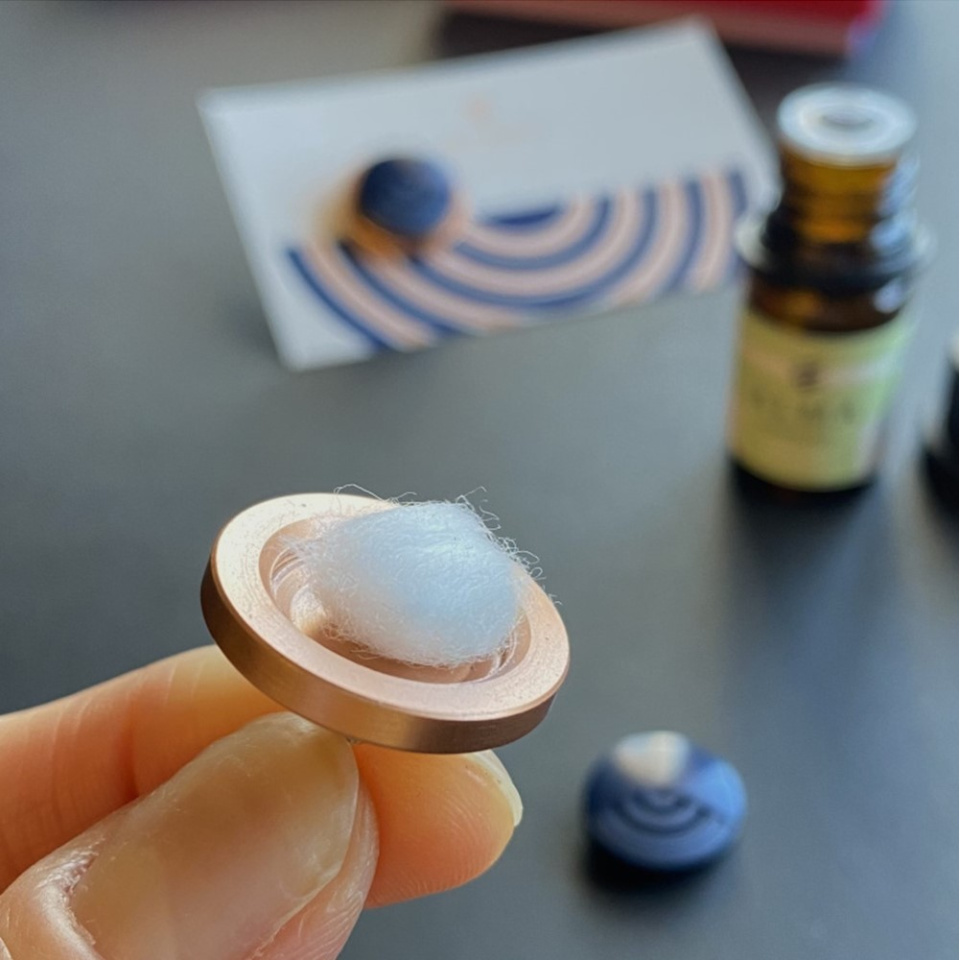 ピアスの中にアロマオイルや香水を数滴垂らしてセットするだけなので、電気や火などを準備する必要がありません。