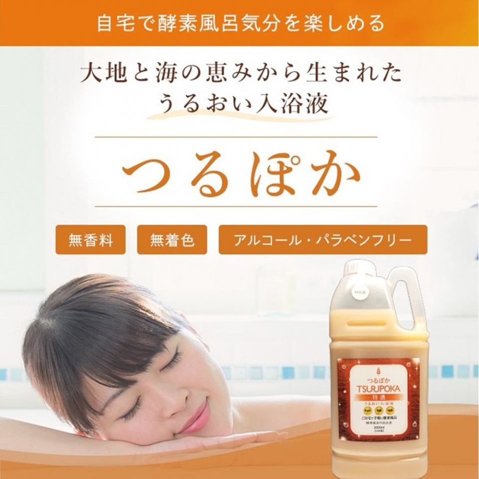 国産の栄養豊富な米ぬかと、北海道・三陸産の昆布を原料として使用し、独自の発酵製法によって生まれた、入浴液「つるぽか」シリーズを販売しております。 出荷本数はシリーズ累計で40万本を突破! ご自宅で、酵素風呂のような心地よさをご体感ください。