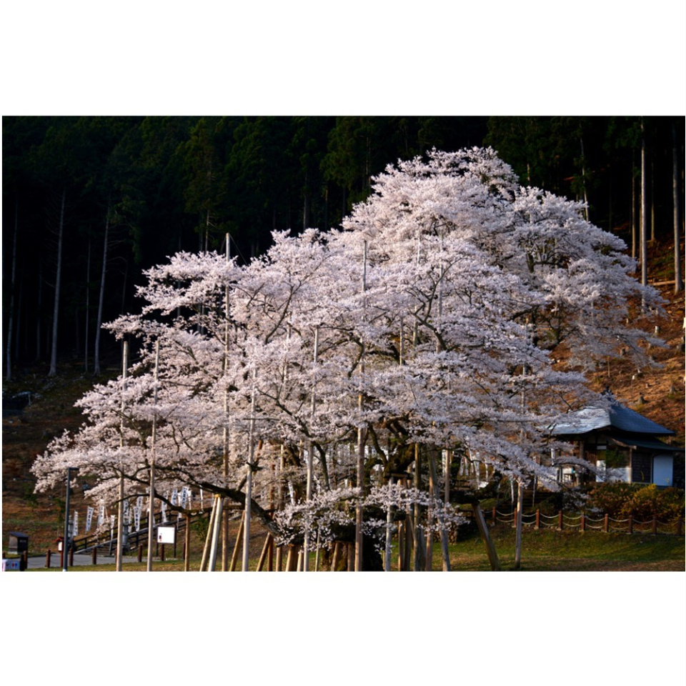 樹齢1500年あまりの“うすずみ桜”は、散りぎわに淡い墨を引いたような色になることから名付けられたといわれています。