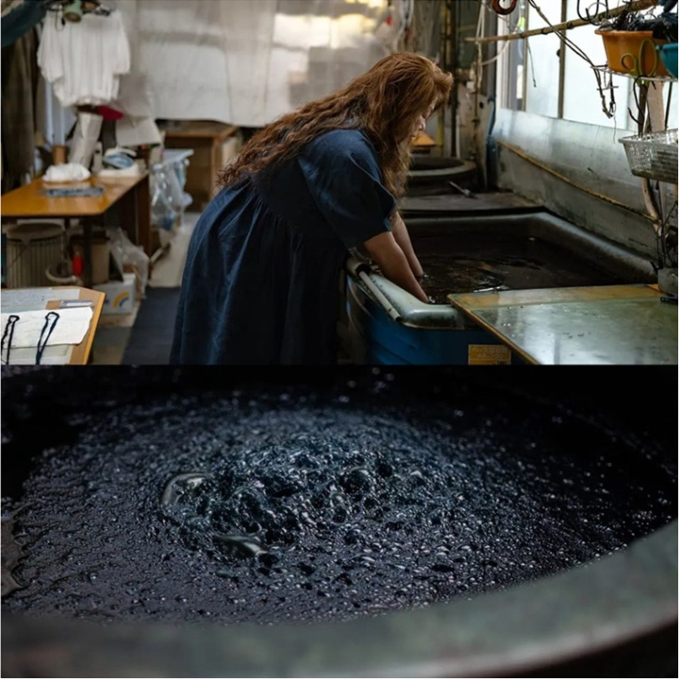 藍は空気に触れることで色の変化が起こるため、染め上げ直後の色合いと、仕上がりに違いが生じます。この見極めは経験のなせる業です。
