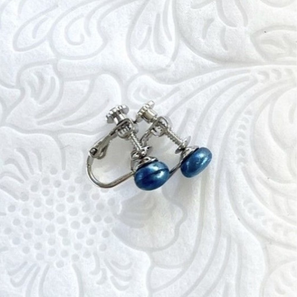 ▪藍パール ひとつぶ イヤリング×ひと組