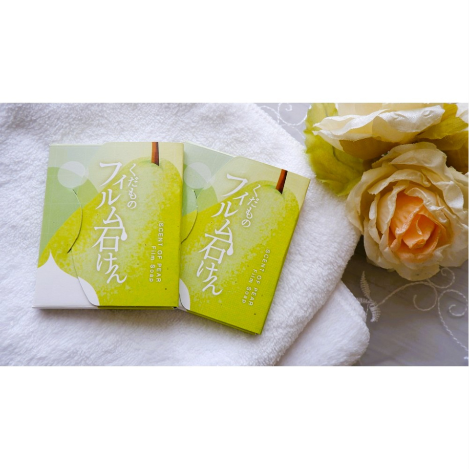 第2弾「洋なしの香り」は薄い緑色のフィルム石けんで開けた瞬間洋なしの香りに包まれます。