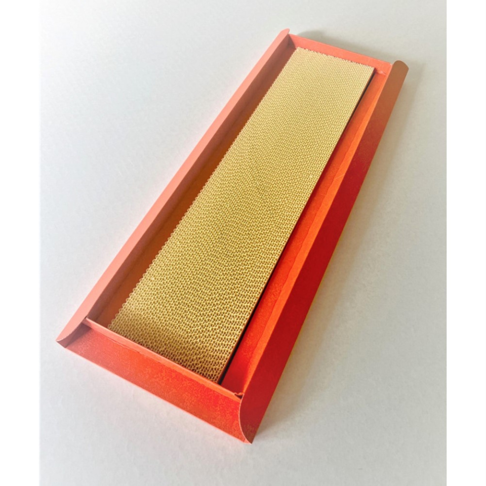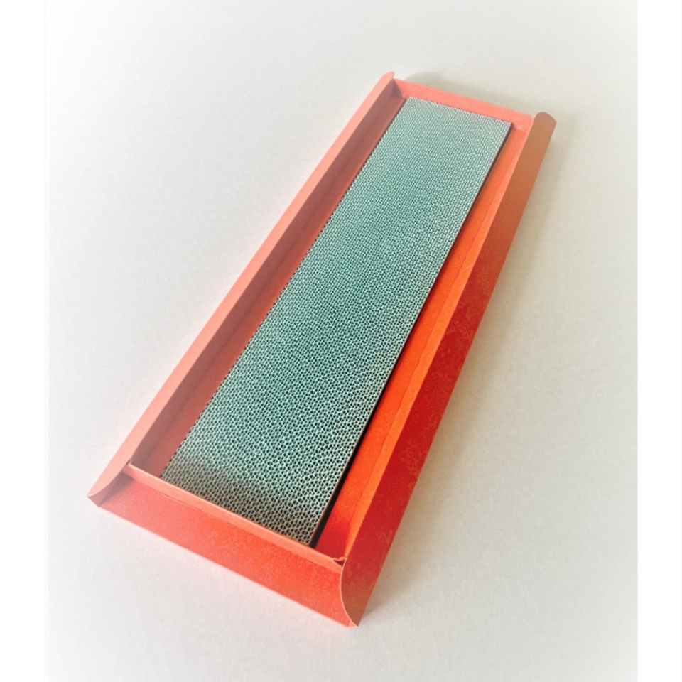 国産紙を使用したカラフルな爪とぎと紙製のケースのセットとなります。