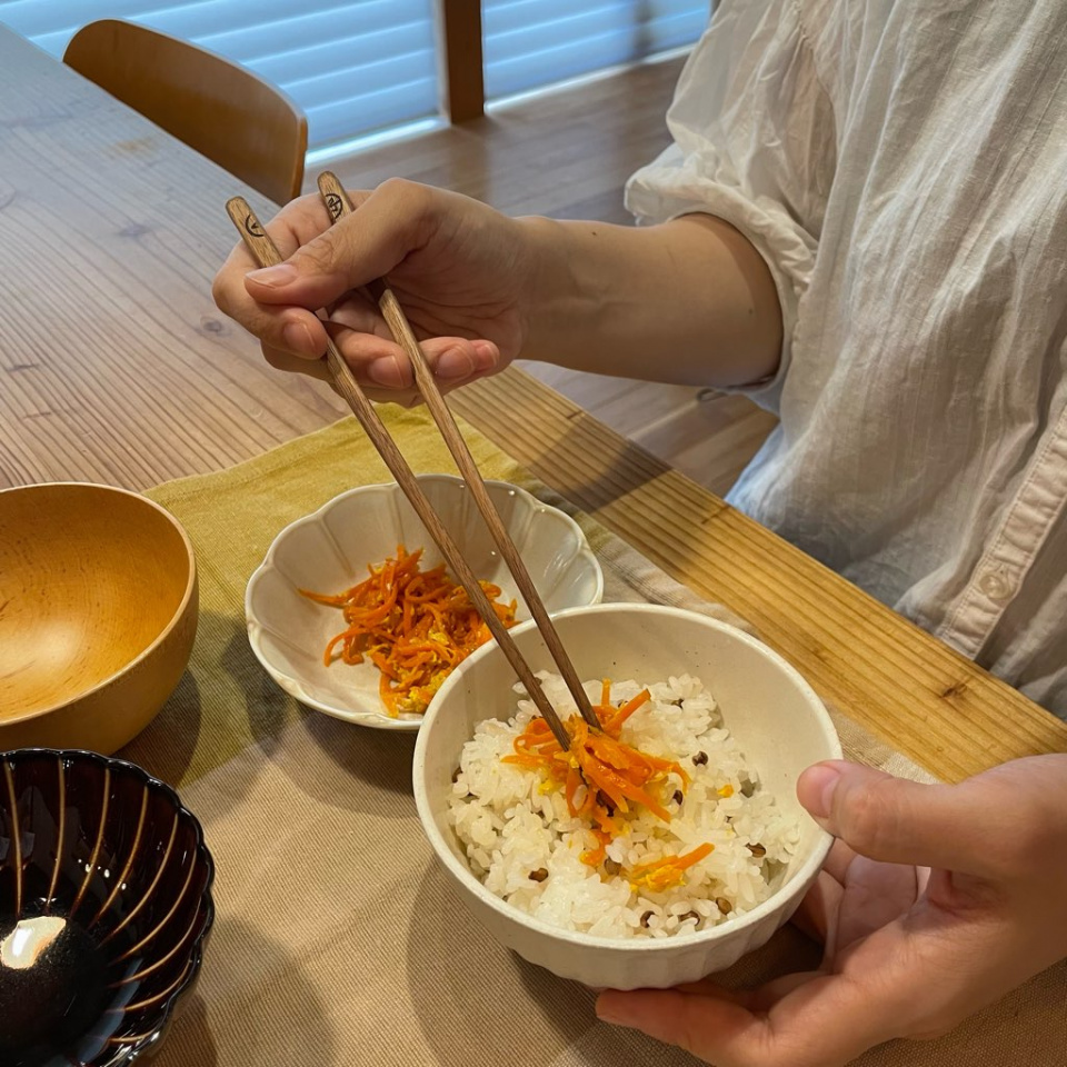 それも無垢の木の箸のアジだと感じていただき、刃物で先を少し削り使い易く整えたりして、最後まで自分の箸として育ててもらえたらと思います。