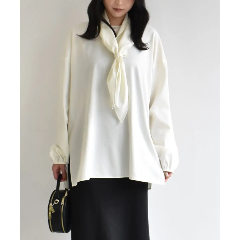 ゆったりとしたサイズ感で体型を選ばず、パンツにもスカートにも合わせやすいデザインです。