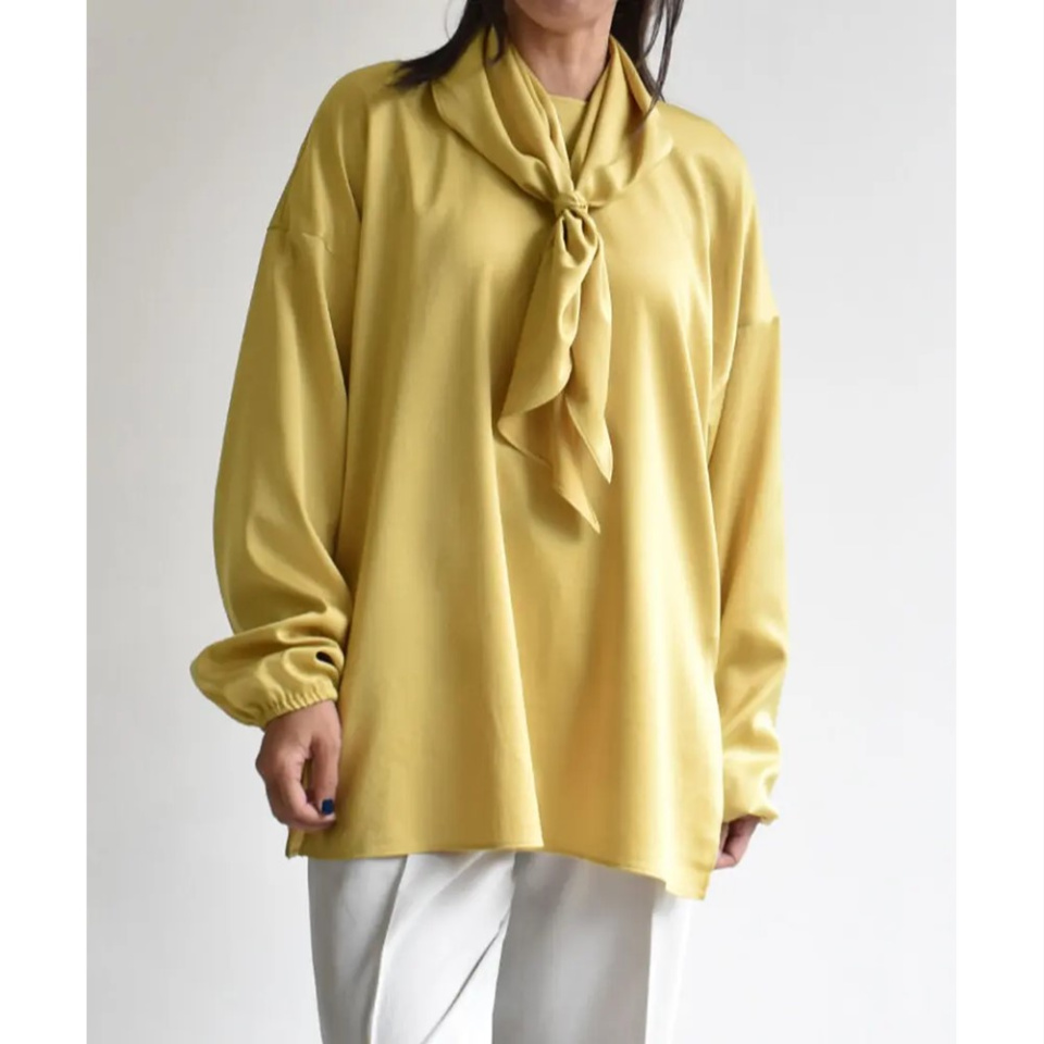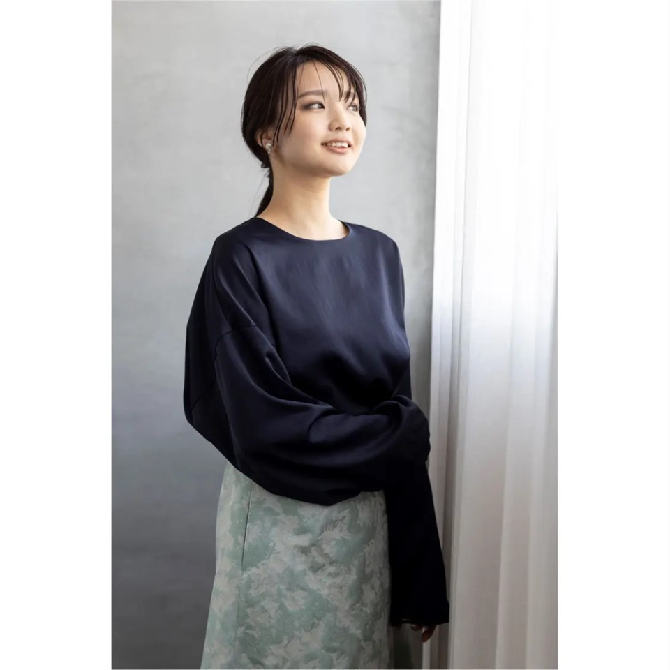 控えめな光沢が上品な、サテン生地を使ったプルオーバータイプのブラウス。