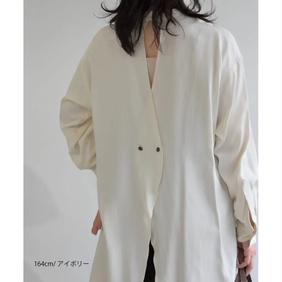 1枚着としてはもちろん、中にカットソーを重ねたり、上にニットを重ねたり、羽織り感覚で使ったりと、1枚で何通りもの着方が楽しめるアイテムです。