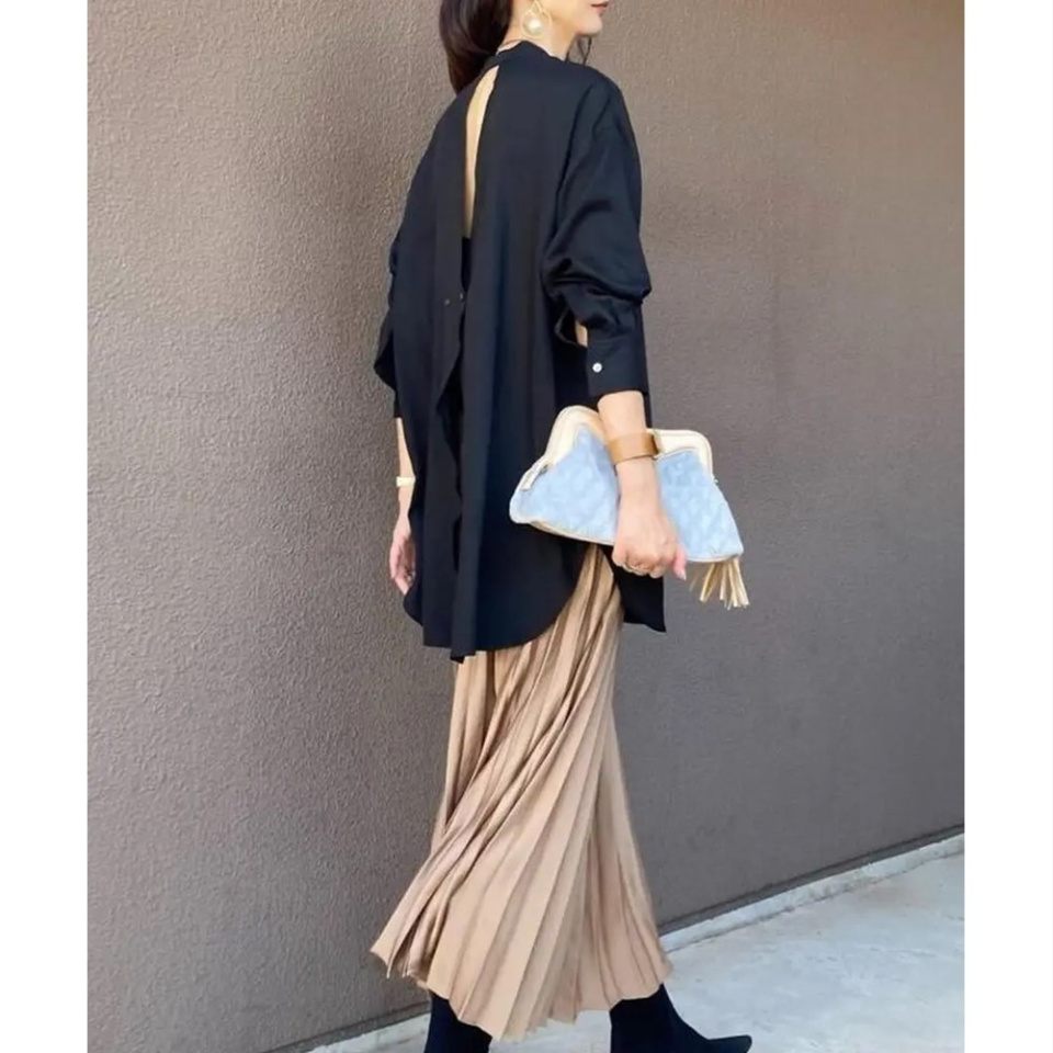 一見クリーンな印象ですが、ゆとりあるシルエットとバックのスリットが、上品な肌見せと抜け感を演出してくれます。